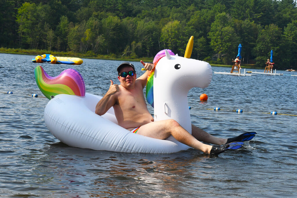 While Camp is structured a lot like summer camp was when you were a kid, your attendance is not required at any of the activities or events. However, we’ve learned over the years that certain activities (like the Ropes Course and your daily Rainbow Group meetings) can make your Camp experience more memorable, so we may strongly recommend you try certain activities or attend certain events. In the end, though, you’re an adult and it’s your vacation, so you can do whatever you please. Spend your week sunning yourself at the waterfront all day and curled up in your bunk with a good book all night if you’d like… we won’t care at all.