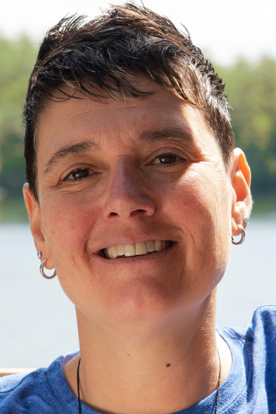 Betsy Orr (she/her; Owner/Purchasing & Inventory Manager, Portland, ME) is a wicked-local, lifelong resident of Maine and is uniquely qualified to be a long-term owner of ‘Camp’ Camp: until her move to Portland in 2013, she could see Camp from her house — although she did have to travel to Boston Pride to find out about it. Betsy first came to ‘Camp’ Camp as a Driver in 2003 and later became a Rainbow Group Leader. When Kerry asked her to become his business partner in 2009, she said “Yes!” before she really had time to consider what she was doing, and she served as Associate Director from 2009-2023 before assuming her current role in 2024. Camp 2025 will be Betsy’s 21st summer at ‘Camp’ Camp, and, while she has loved every minute of the journey thus far, she’s excited that her current role as Purchasing & Inventory Manager allows her to spend the week of Camp frolicking full-time with the other Campers. Having spent much of her youth at her grandmother’s camp, Betsy has always been well-equipped to spend her summers playing with a bunch of queers in the Maine woods. To know her is to know that she’s really just an overgrown kid. ‘Camp’ Camp founder Bill Cole gave her the nickname “Plays Well With Others,” which is a pretty accurate description, as her constant smile, quick wit, and colorful (ahem) language render her easily approachable at ‘Camp’ Camp. Betsy recently retired after many years of avoiding lesbian stereotypes as a PE and Health teacher, though she finds working with ‘Camp’ Campers to be oddly similar to working with the Middle School students she used to teach when ‘Camp’ Camp wasn’t in session. Betsy can always be heard before she is seen—which gives you ample notice to turn and run or to stop and talk.